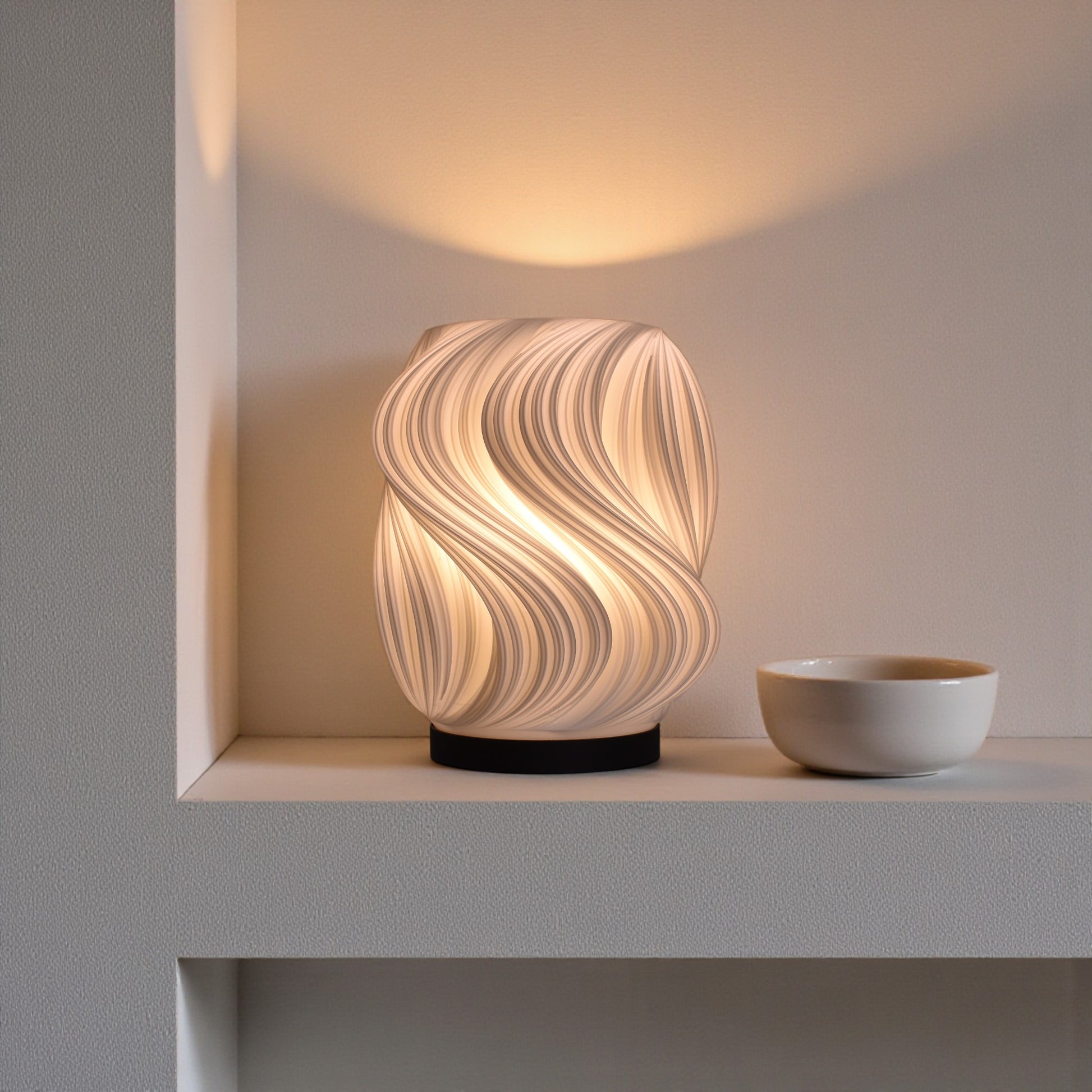 Brisa fångar känslan av en lätt vind som sveper genom rummet. De mjukt böljande linjerna låter ljuset dansa och sprida ett varmt, levande sken. En stämningsfull detalj som passar lika bra i vardagsrum som i sovrum eller arbetsrum.